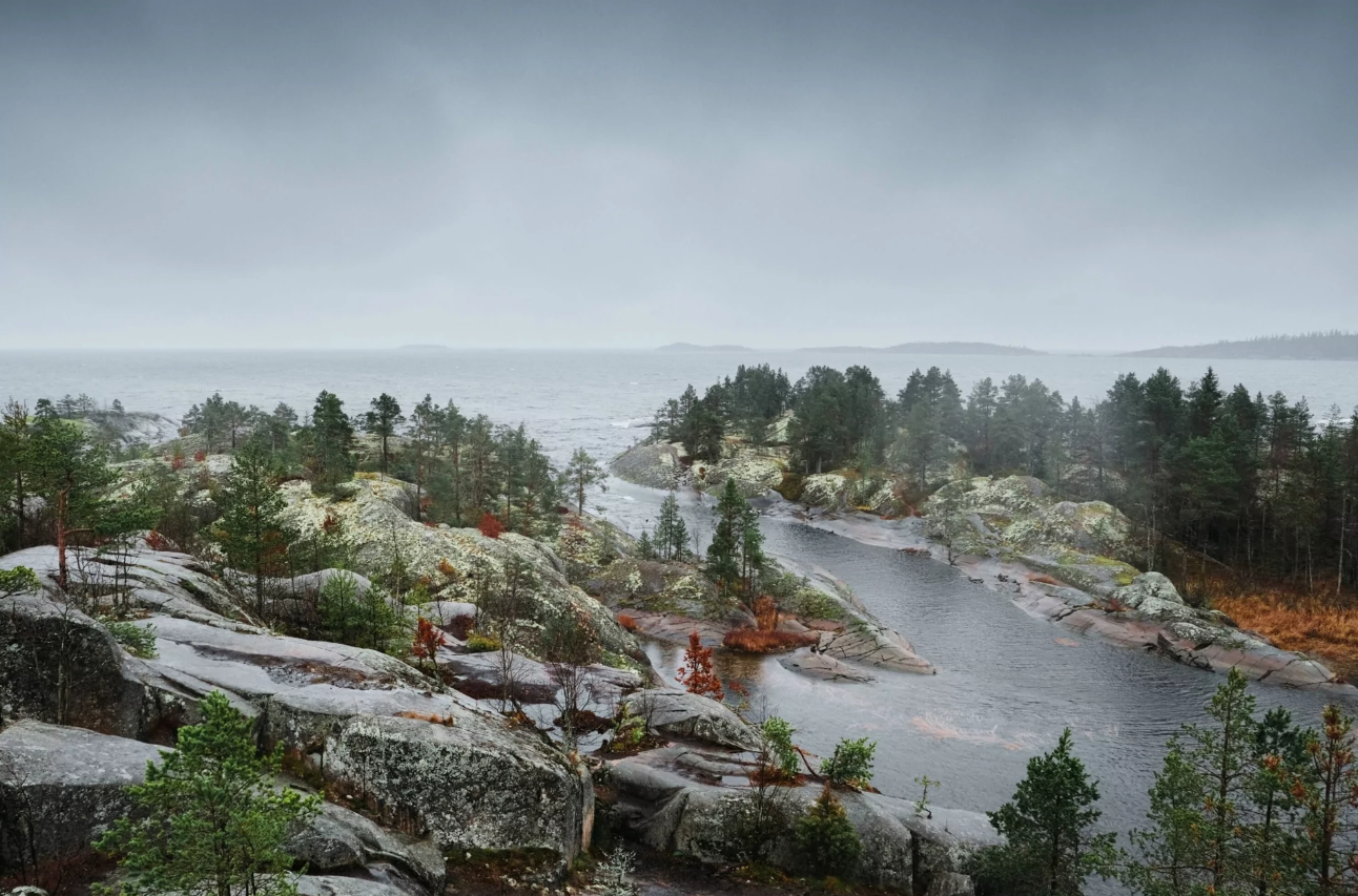 Кирьявалахти, самый северный залив Ладоги, очень похож на норвежский фьорд. В погожий день его поверхность искрится в лучах солнца, отсюда и название – «искристый, пестрый залив».