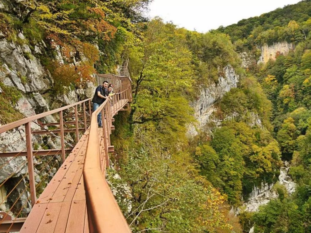 Этот путь – по «Дарьяльскму ущелью» – Дарьяльская Дорога по лощинам рек Терека и Арагви — известен с давнего времени. Здесь нет повторений — сплошное чередование контрастных красочных ландшафтов, начиная от долин с зеленью садов и виноградников на высоте 150 метров над уровнем моря, и заканчивая величавыми горными вершинами, поднимающимися выше 5000 метров.