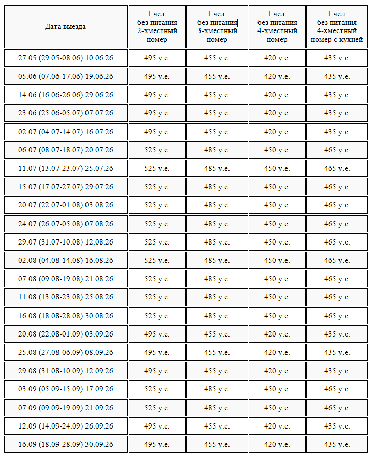 (При себе иметь небольшую сумму российских денег на обеды, ужины).