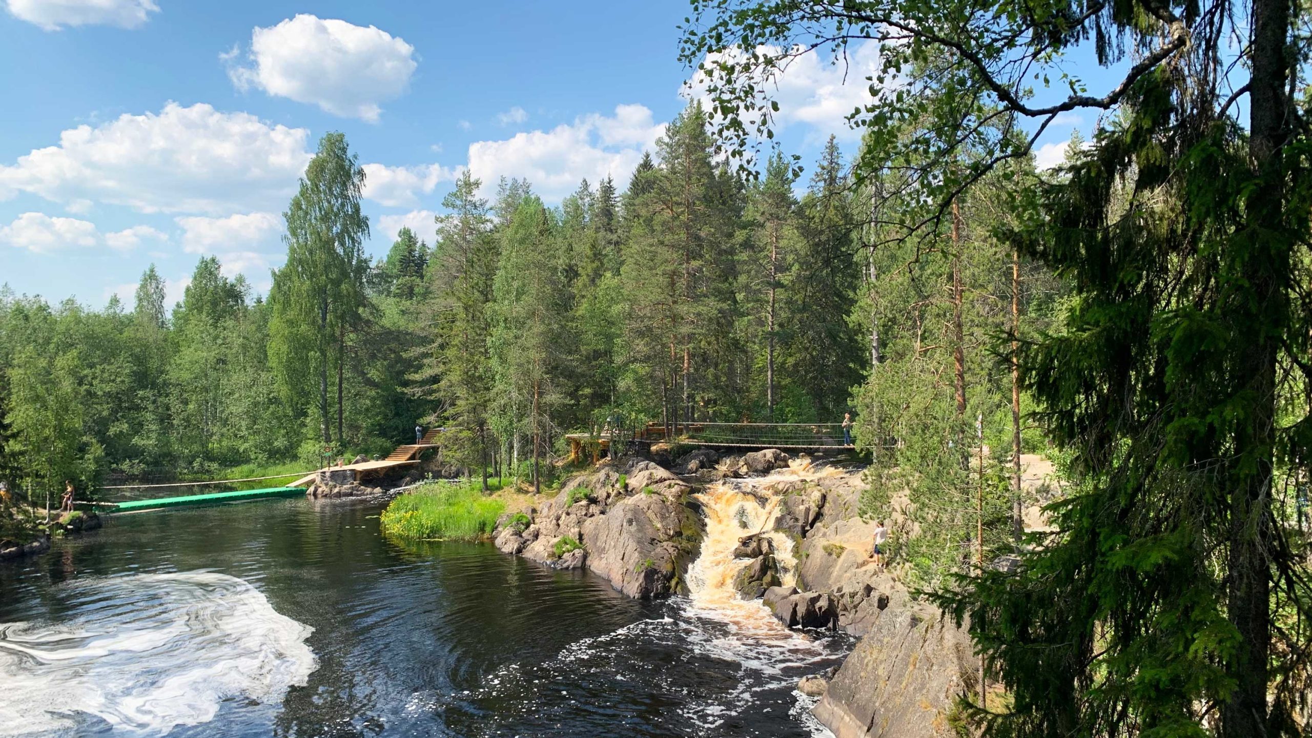 Водопады Ахвенкоски на реке Тохмайоки – каскад из нескольких водопадов с гранитными уступами в окружении хвойного леса. Эти места послужили природными декорациями для нескольких художественных фильмов, самый известный из которых - военная драма «А зори здесь тихие…». По желанию, за дополнительную оплату ~ 450 рос.руб: экологическая тропа у водопадов Ахвенкоски* .