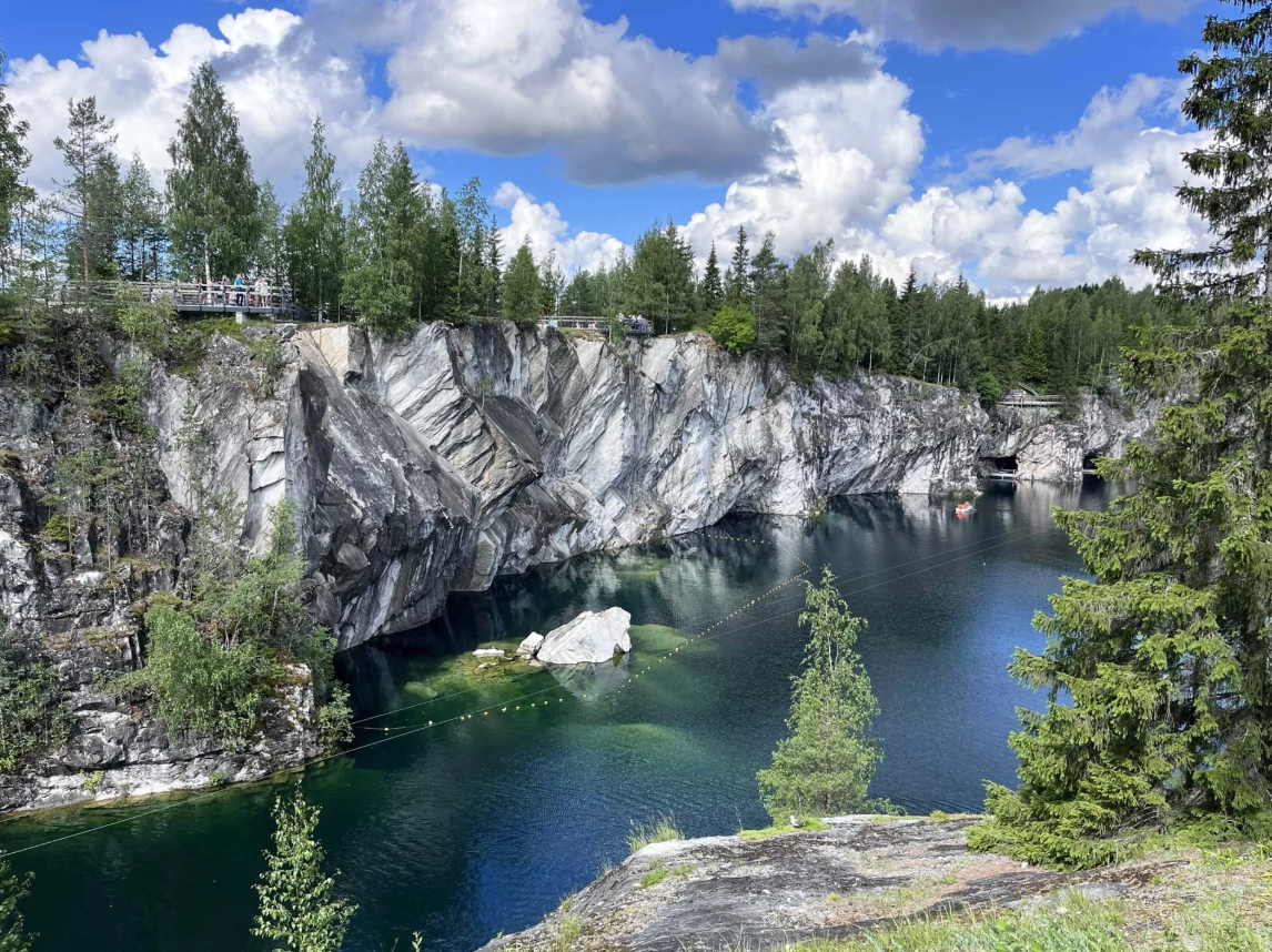 Горный парк «Рускеала». Экскурсия и свободное время в Горном парке, поражающем своей красотой в любое время года. Его визитная карточка - Мраморный каньон. Это большое вытянутое с юга на север озеро с кристально чистой водой и отвесными берегами из настоящего мрамора. Раньше здесь добывали этот декоративный камень для отделки архитектурных шедевров Санкт-Петербурга.