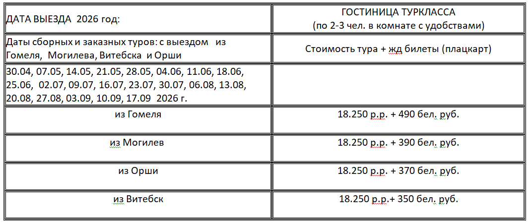 Турагентство оставляет за собой право изменения порядка проведения экскурсий и графика передвижения по маршруту, сохраняя программу в целом, и не несет ответственности за «пробки» на дорогах и задержки на границе.