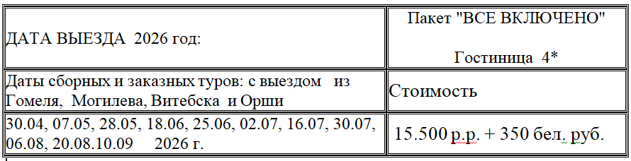 Турагентство оставляет за собой право изменения порядка проведения экскурсий и графика передвижения по маршруту, сохраняя программу в целом, и не несет ответственности за «пробки» на дорогах и задержки на границе.