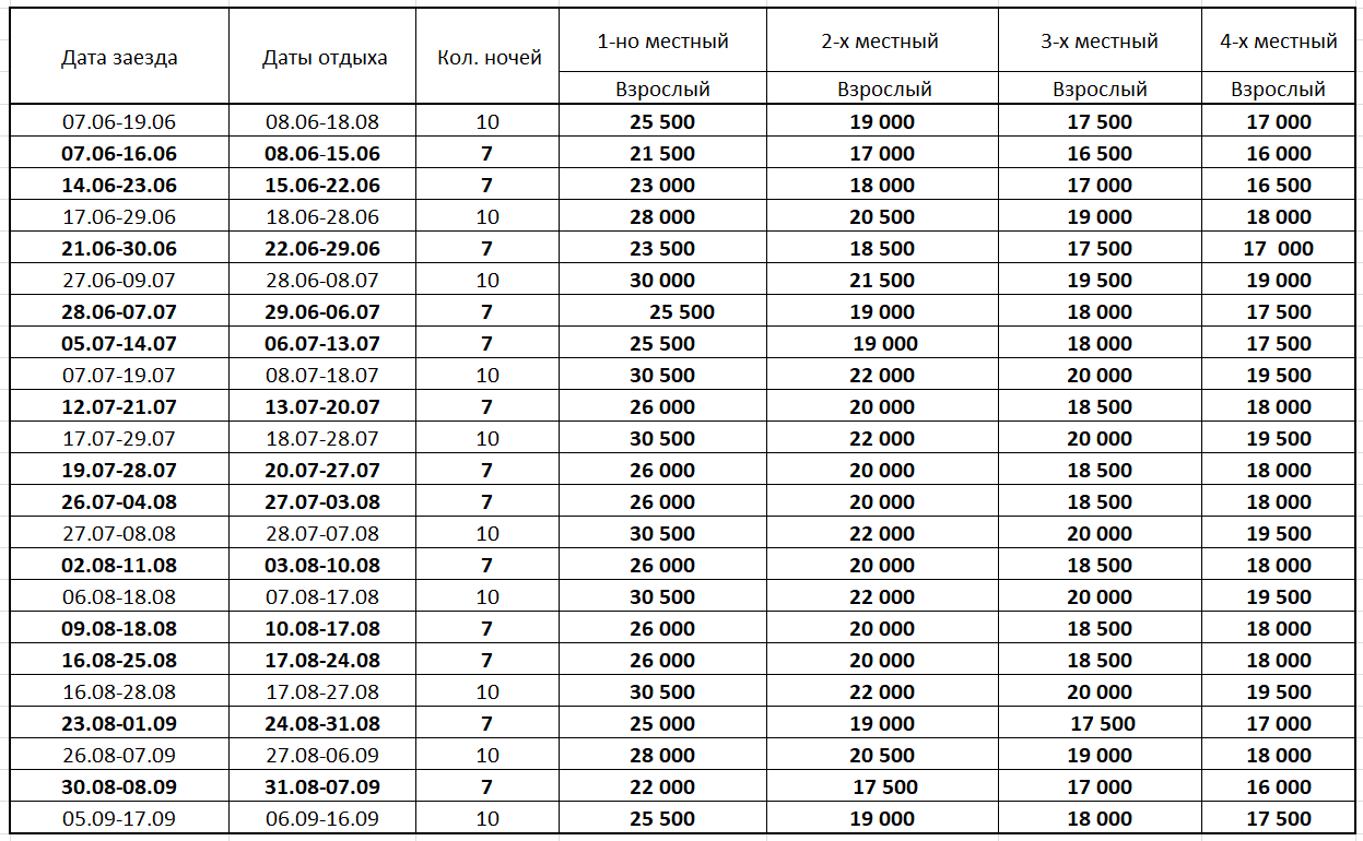 Дети до 5-х лет без предоставления места в гостевом доме (место в автобусе + коммунальный сбор) = 14 000 рос.руб.