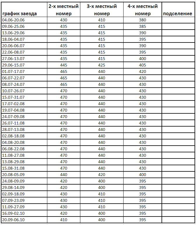 Дополнительное место (дети до 14 лет) 375 $ +транспортно-туристическая услуга