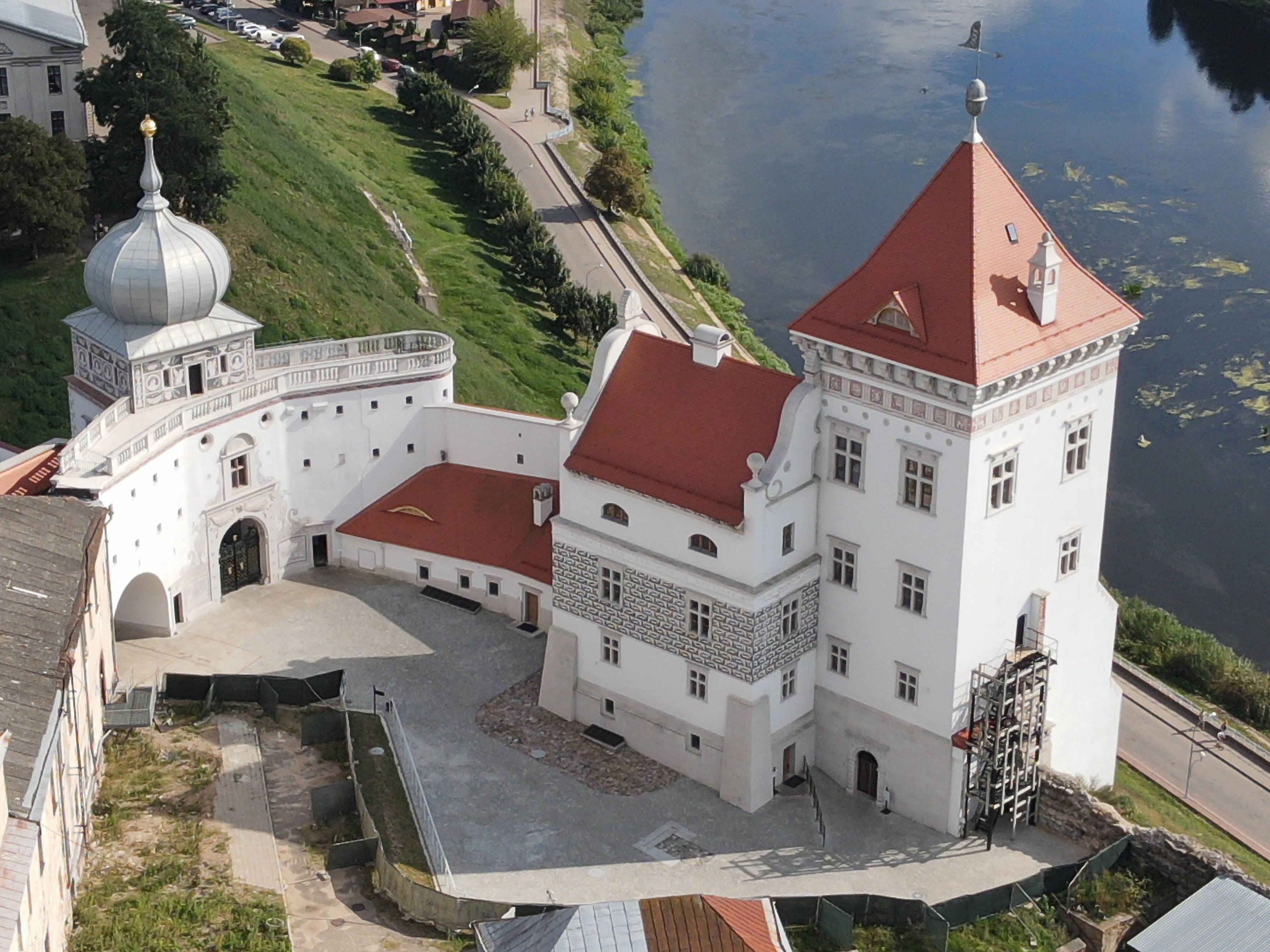 На высоком крутом берегу Немана живописно раскинулись два замка. Королевский готический замок в Гродно возник во времена Витовта, в конце XVI в. король Стефан Баторий перестроил его в ренессансный дворец, сыгравший значительную роль в истории государства. После многолетней реконструкции замок вернул свой первоначальный королевский облик! Внутренний дворик Замковой горы, мощная крепостная стена с галереей, въездная и средняя башни, мерная изба и каменица представляют жизнь средневекового замка. Музей высокотехнологичный, здесь интерактивные витрины с сенсорными экранами. Некоторые изображения «оживают», как, на пример, первое графическое изображение Гродно: гравюра Адельгаузера-Цюндта 1568 года. Уникальные находки и предметы времен Стефана Батория, старинные печи и мебель, оружие и ткацкий станок дополняют впечатление от той эпохи. Прогулка по галерее, подъем на ОБЗОРНУЮ площадку замка — с нее открываются чудесные виды на Неман, исторический центр Гродно…